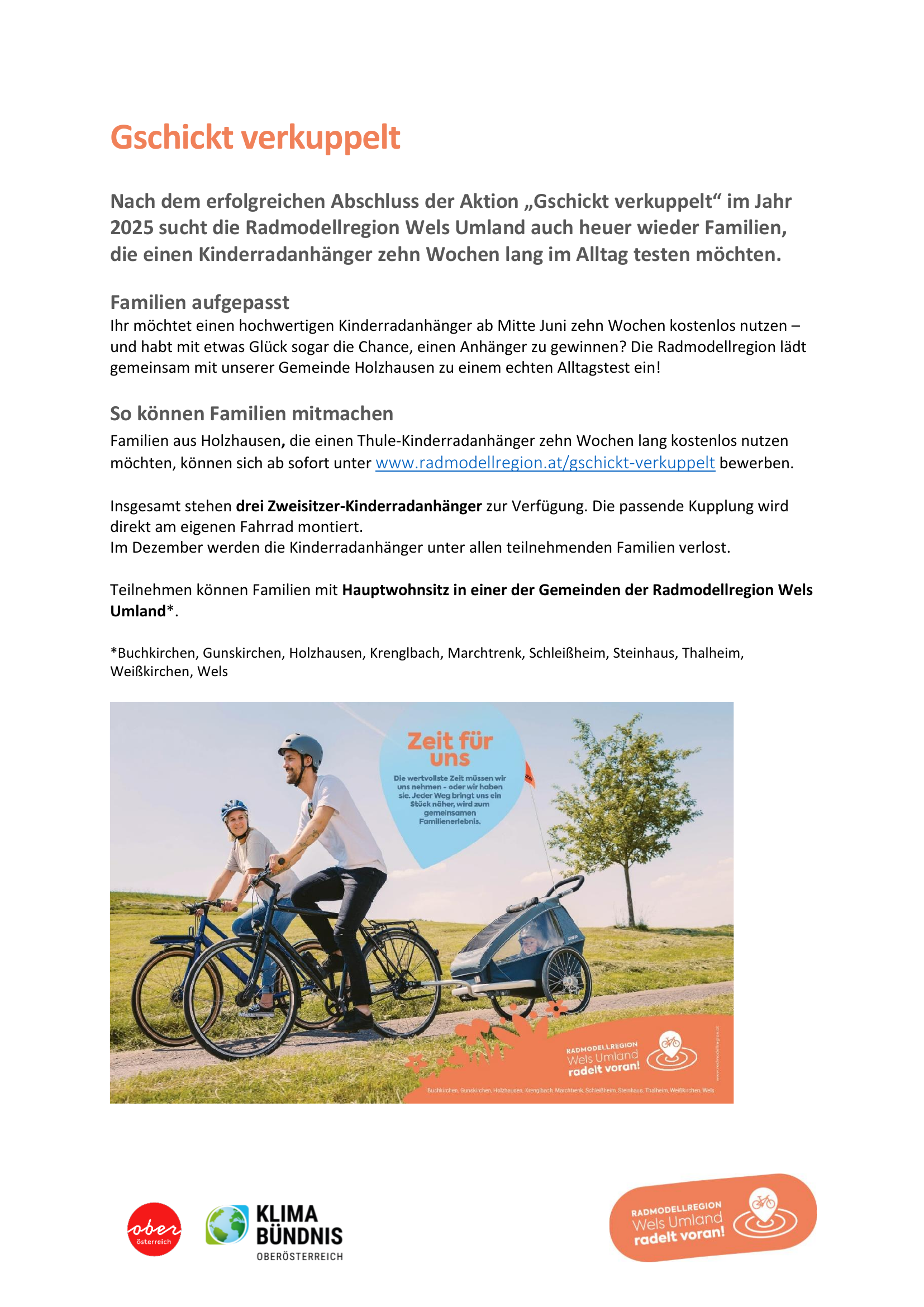 Gschickt verkuppelt . Kinderradanhänger kostenlos nutzen